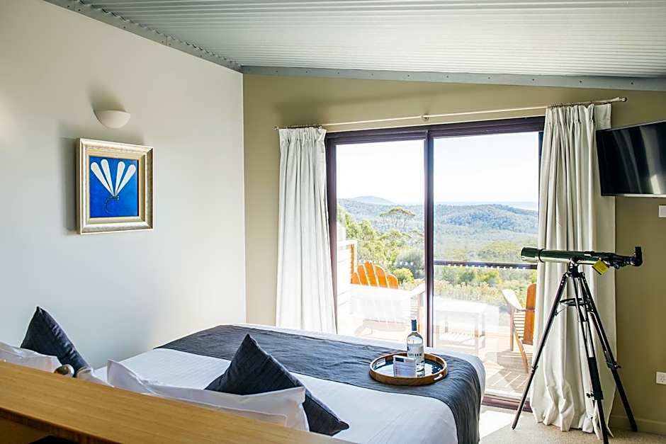 These eco-friendly studios feature panoramic views of the Tasman Sea.